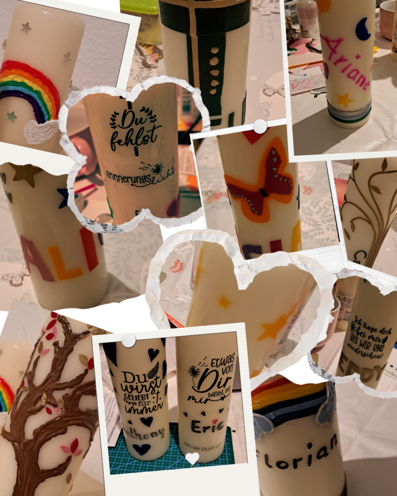 Es entstanden wieder wunderschöne Gedenkkerzen für unsere Kinder und den Candle-Lighting-Day im Dezember.